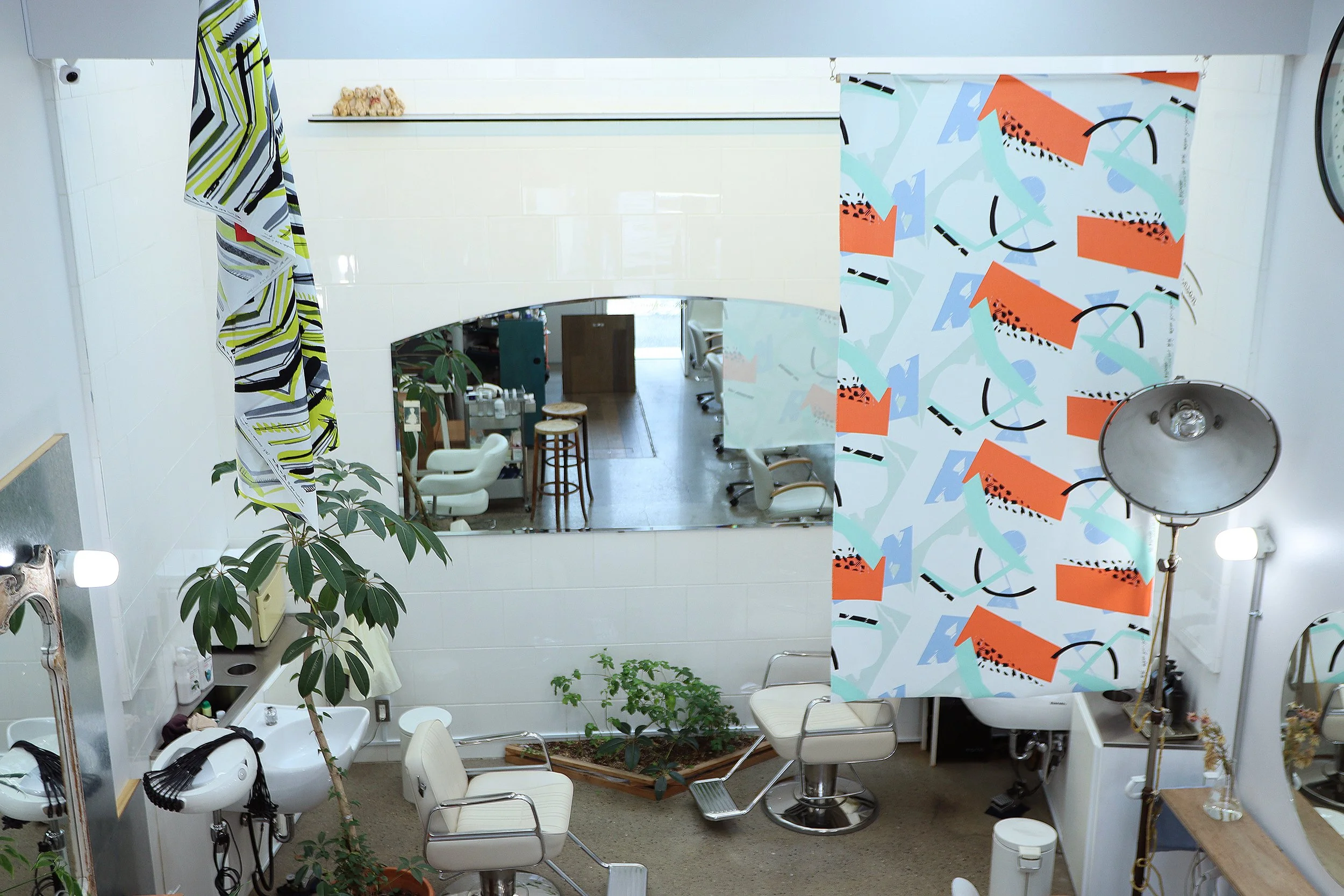 boy isでは、ASENDADA Textileを使ってboyの美術部と動物部が企画製作したシュシュがヘアサロンらしい雰囲気を作ってくれて人気の商品でした。私自身も会期中にスタッフさん(下記画像に写っているもえかちゃん)にシュシュを使ってアレンジしていただき、久しぶりにドキドキして嬉しくなり、いいねって思ったり。