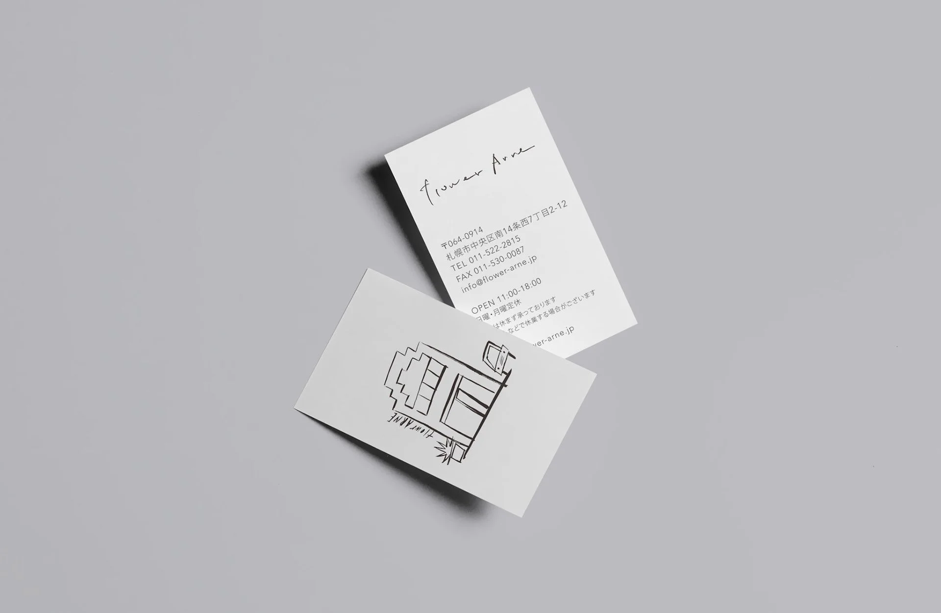 flower ARNE 札幌の花屋「flower ARNE」のロゴデザインおよび販促物のデザインを手がけました。オーダーメイドでつくられる花束の勢いや瑞々しさ、そしてオーナーの持つ感覚を、全体のトーンで表現しています。